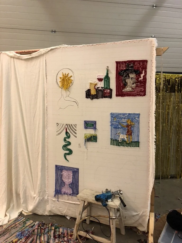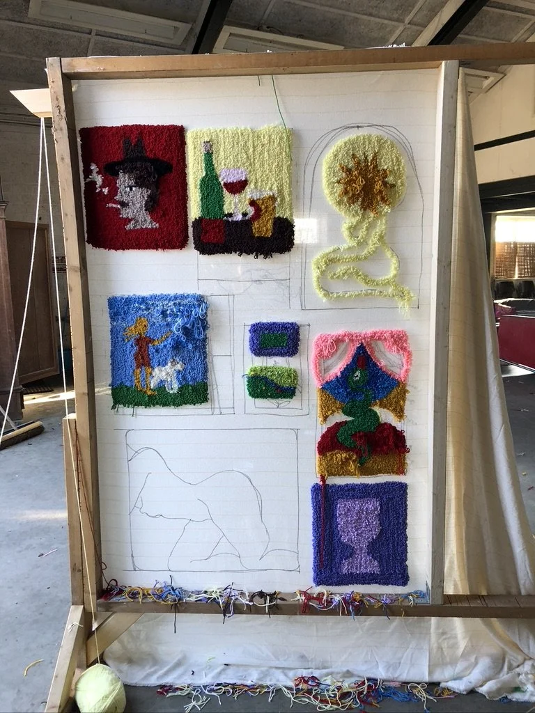I love working in different mediums. By transforming my drawings in tangible works, like rugs or wallhangings, I challenge myself to work in different techniques and sizes. I made my first tuft in the academy, and since then I have been experimenting with my own tufting gun. I also do commissions!